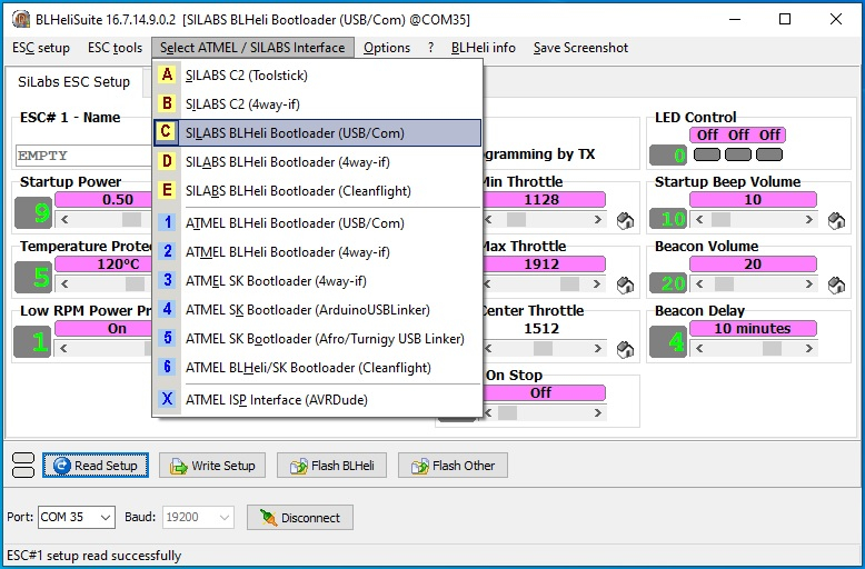 UBS programátor pro přímé nastavení regulátorů s firmwarem BlHeli_S a BlHeli_32 přes počítač konfigurátorem BlHeli Suite. Do programátoru zapojíte klasický servokonektor z regulátoru, připojíte k regulátoru baterii a zapojíte do USB. V BlHeli Suite vyberete rozhraní USB/Com a regulátor můžete nastavit i bez řídicí jednotky. 5V BEC výstup z regulátoru může být také zapojen, ale není vyžadován.